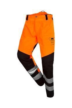| Pantalon anticoupure, Classe 1 Type A1. Braguette avec fermeture à glissière, 1 bouton. Taille élastique avec passants pour ceinturon et bretelles à Velcro® (réf. 5SD4). Bavette dorsale. 2 poches enfilées. Poche plaquée avec fermeture à glissière au dos. Poche mètre plaquée, système de positionnement de clé à bougie. Couture arrière à triple point sur la face interne de la jambe. | Protection avant à 6 couches. E.J. : 82 cm.