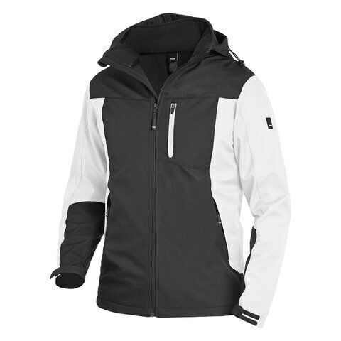 Veste softshell bicolore homme. Capuche ajustable, amovible. Fermeture milieu devant zippée avec protège menton. 2 poches basses zippées dans la découpe. Poche poitrine zippée. Manches longues avec poignets ajustables par pattes auto-agrippantes. 1 poche intérieure ouverte et 1 autre zippée. Détails rétroréfléchissants sur les avant-bras. Coupe ajustée. Imperméabilité et respirabilité 10K/5K