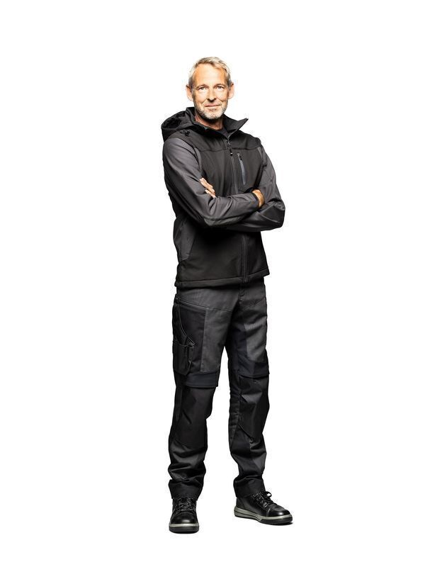 Veste softshell bicolore homme. Capuche ajustable, amovible. Fermeture milieu devant zippée avec protège menton. 2 poches basses zippées dans la découpe. Poche poitrine zippée. Manches longues avec poignets ajustables par pattes auto-agrippantes. 1 poche intérieure ouverte et 1 autre zippée. Détails rétroréfléchissants sur les avant-bras. Coupe ajustée. Imperméabilité et respirabilité 10K/5K
