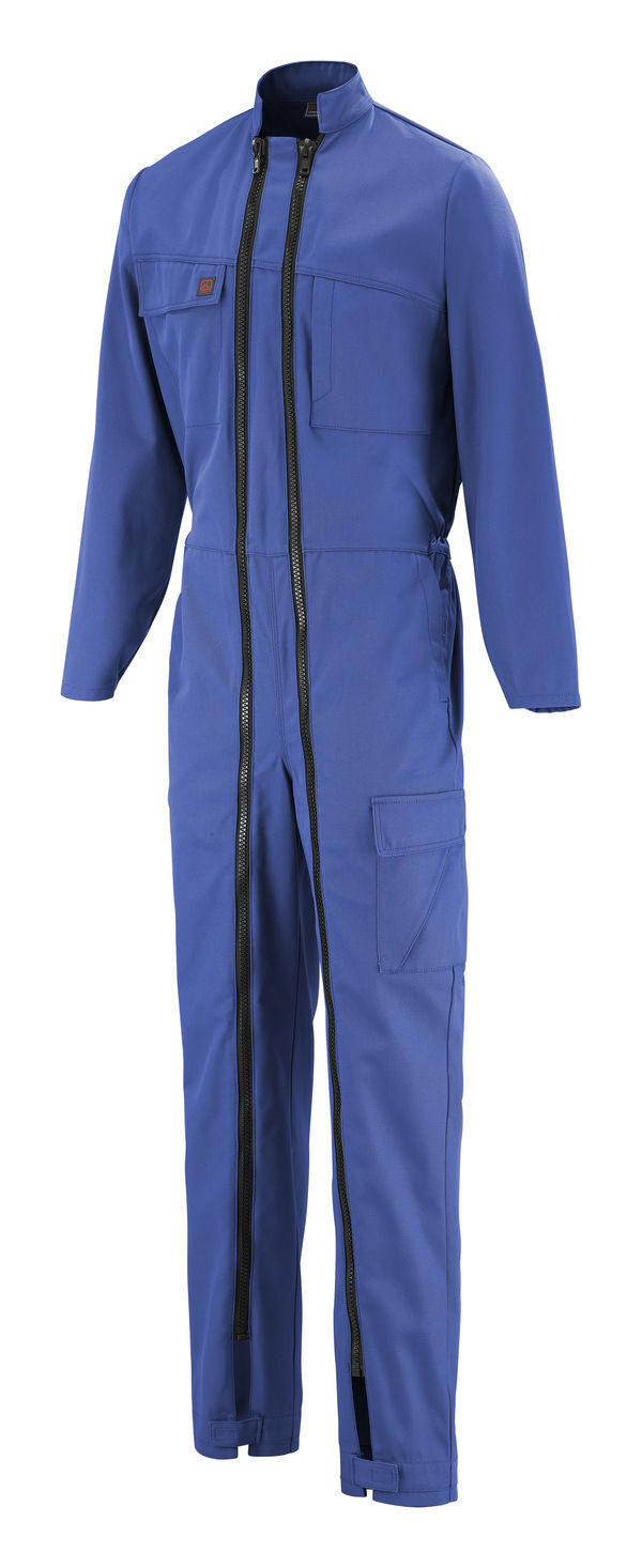 Combinaison double zip. Col officier. Collerette de marquage. Fermeture par double fermeture à glissière. Empiècements devant et dos obliques. Poche poitrine droite incrustée sous rabat fermé par Velcro® cachés. Poche poitrine gauche avec ouverture verticale fermée par Velcro® caché. Manches montées. Bas de manches réglables par pressions. Elastiques côtés. Poche revolver plaquée. Poches italiennes et passe-mains fermés par Velcro®. Poche mètre bas volant. Poche cuisse gauche à soufflet, sous rabat fermé par Velcro® cachés. Bas de jambe évolutifs avec pattes de serrage à Velcro®. Surpiqûres contrastées. Mercerie tout plastique. E.J. : 82 cm (+ 5 cm).