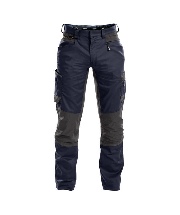 Pantalon bi-matière stretch. Fermeture à glissière, bouton jean caché, serrage élastique dos réglable. Taille abaissée. Insert stretch quadri-directionnel entrejambe, genoux, et enforme dos. Poches renforcées Cordura®. 2 poches italiennes. Poches arrières. Poche cuisse. Porte-crayon. Poche mètre. Poche cutter. Bouton pour porte couteau. Anneau en "D". Poche téléphone. Porte-badge détachable. Poche de sécurité zippée. Détails réfléchissants. | Coutures triples. Surpiqûres contrastées. Coupe ajustée. E.J. : 81 cm (+5 cm). 3 longueurs disponibles.