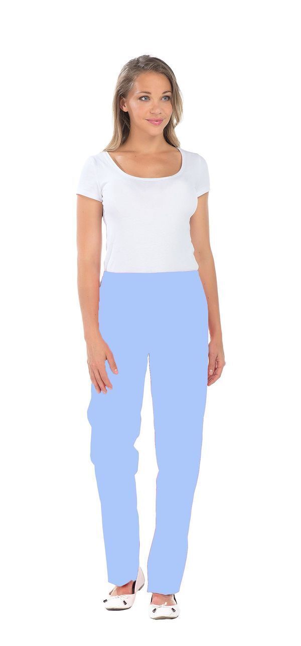 Pantalon femme. Taille semi-élastiquée effet ventre plat. 2 poches italiennes. E.J. : 82 cm.