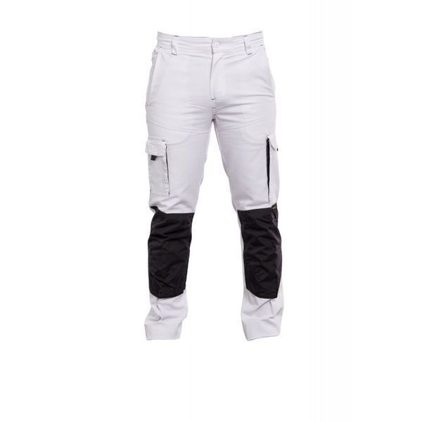 Pantalon stretch, ceinture droite avec passants. Fermeture centrale par bouton. Braguette zippée. Renfort à l'entrejambe. 2 poches italienne. 2 poches cuisses à rabat et soufflet contrastés, dont une poche de sécurité fermé par zip. Poche téléphone. Réhausse dos. 2 poches plaquées dos dont une à rabat. Finition par ourlets. Coupe ajustée, E.J: 82 cm (+5 cm).